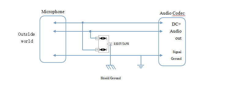 麥克風線路的標準信號最大值通常為 5.5 Vp-p,最大頻率低于 10kHz。 在該頻率下,不需要考慮抑制器的電容量。