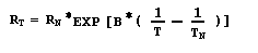 式中:RT、RN分別表示NTC在溫度T(K)和額定額定溫度TN (K)下的電阻值,單位?,T、TN 為溫度, 單位K(TN(k)=273.15+TN(℃))。B,稱作B值,NTC熱敏電阻特定的材料常數(Beta)。由于B值 同樣是隨溫度而變化的,因此NTC熱敏電阻的實際特性,只能粗略地用指數關系來描述,所以這種方法只能以一定的精度來描述額定溫度或電阻值附近的有限的范圍。但是在實際應用中,要求有比較精確的 R-T 曲線。要用比較復雜的方法(例如用 The Steinhart-Hart 方程),或者用表格的形式來給定電阻/溫度關系。