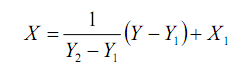 點(X1,Y1)和點(X2,Y2)為相鄰兩溫度點,所以 X2-X1=1 那么由式上式可得: