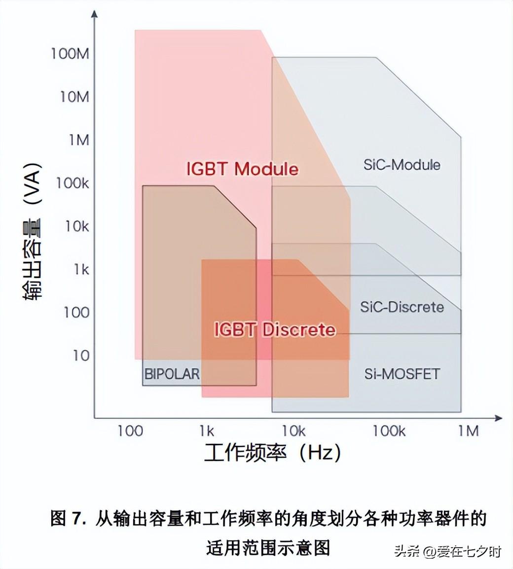 ② 在 IGBT 與 SiC MOSFET 的比較中,SiC MOSFET 覆蓋輸出容量大的高頻區域。