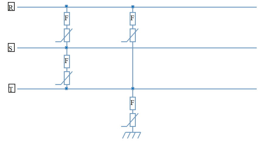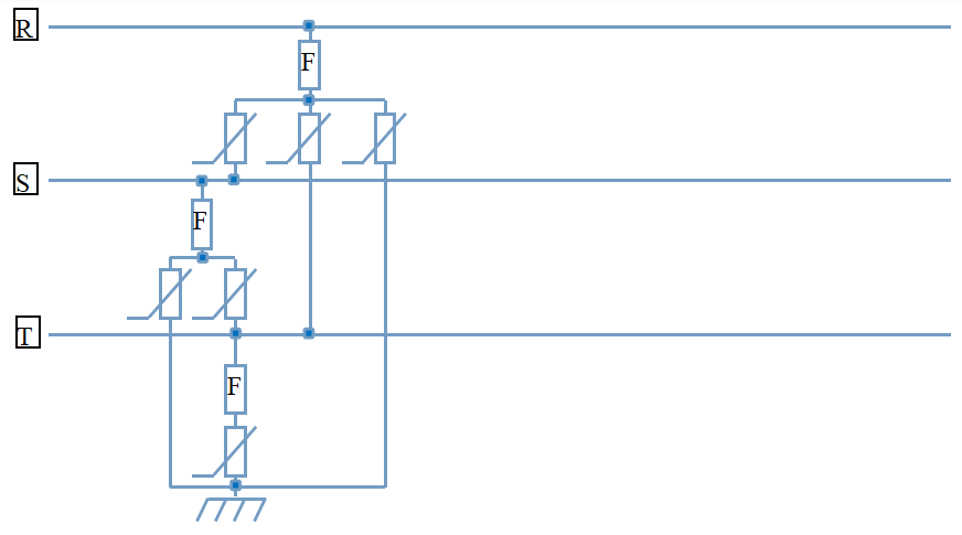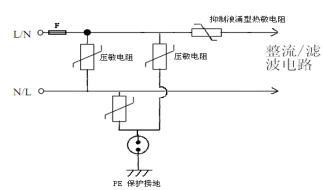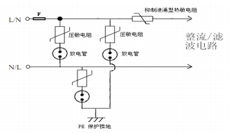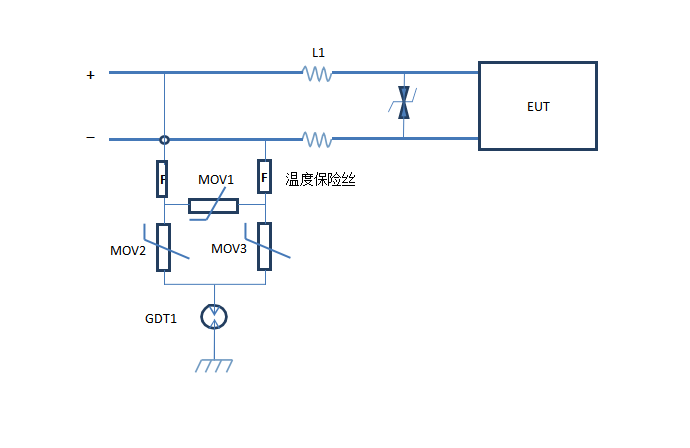 壓(ya)敏電(dian)阻(zu)或(huo)(huo)者(zhe)氣(qi)體(ti)放電(dian)管(guan)(guan)(大(da)通流器件(jian))做粗保護,TVS做細保護,用(yong)電(dian)感退耦,因(yin)為TVS的(de)(de)響(xiang)應速度比壓(ya)敏或(huo)(huo)者(zhe)氣(qi)體(ti)放電(dian)管(guan)(guan)快(kuai),使用(yong)電(dian)感的(de)(de)目(mu)的(de)(de)是(shi)當大(da)浪(lang)涌(yong)出(chu)現時,使大(da)部分能量通過(guo)壓(ya)敏或(huo)(huo)者(zhe)氣(qi)體(ti)放電(dian)管(guan)(guan)泄放,剩(sheng)余的(de)(de)小部分殘壓(ya),通過(guo)TVS再次抑制,最終將浪(lang)涌(yong)削弱到EUT能承受的(de)(de)水(shui)平(ping)。最前端(duan)保險絲(si)的(de)(de)作用(yong)是(shi)當后面壓(ya)敏出(chu)現老化失效或(huo)(huo)者(zhe)TVS出(chu)現異常時,能夠及時斷(duan)開電(dian)路(lu),推(tui)薦使用(yong)慢斷(duan)的(de)(de)保險絲(si)。