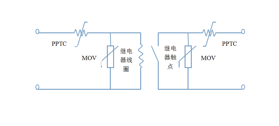 關鍵(jian)詞(ci):繼電器的(de)過(guo)流過(guo)壓保護、PPTC自恢復保險絲、壓敏電阻。