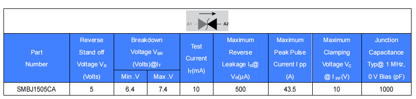 SMBJ1505CA 瞬態抑制二(er)極(ji)管(guan)是專(zhuan)門(men)為(wei)SIC MOS管(guan)柵(zha)極(ji)保(bao)(bao)護(hu)設(she)計的(de)(de)(de),其正(zheng)(zheng)向擊穿電(dian)(dian)(dian)(dian)壓(ya)通常設(she)定為(wei)15V左右,反向擊穿電(dian)(dian)(dian)(dian)壓(ya)設(she)定為(wei) - 5V左右。這(zhe)樣(yang)的(de)(de)(de)電(dian)(dian)(dian)(dian)壓(ya)設(she)定能夠(gou)與SIC MOS管(guan)的(de)(de)(de)柵(zha)極(ji)工作電(dian)(dian)(dian)(dian)壓(ya)范(fan)圍相匹配(pei),有效地保(bao)(bao)護(hu)柵(zha)極(ji)免(mian)受正(zheng)(zheng)向和(he)反向過電(dian)(dian)(dian)(dian)壓(ya)的(de)(de)(de)損(sun)害,這(zhe)種二(er)極(ji)管(guan)具有快速的(de)(de)(de)響應時間(jian)(jian)、低動(dong)態電(dian)(dian)(dian)(dian)阻和(he)高脈(mo)(mo)(mo)沖功率(lv)承(cheng)受能力等特點。快速的(de)(de)(de)響應時間(jian)(jian)能夠(gou)確保(bao)(bao)在(zai)過電(dian)(dian)(dian)(dian)壓(ya)出現的(de)(de)(de)瞬間(jian)(jian)及(ji)時動(dong)作,低動(dong)態電(dian)(dian)(dian)(dian)阻可以使鉗位電(dian)(dian)(dian)(dian)壓(ya)盡可能接近(jin)擊穿電(dian)(dian)(dian)(dian)壓(ya),高脈(mo)(mo)(mo)沖功率(lv)承(cheng)受能力則保(bao)(bao)證了(le)二(er)極(ji)管(guan)在(zai)承(cheng)受大電(dian)(dian)(dian)(dian)流脈(mo)(mo)(mo)沖時不會(hui)損(sun)壞