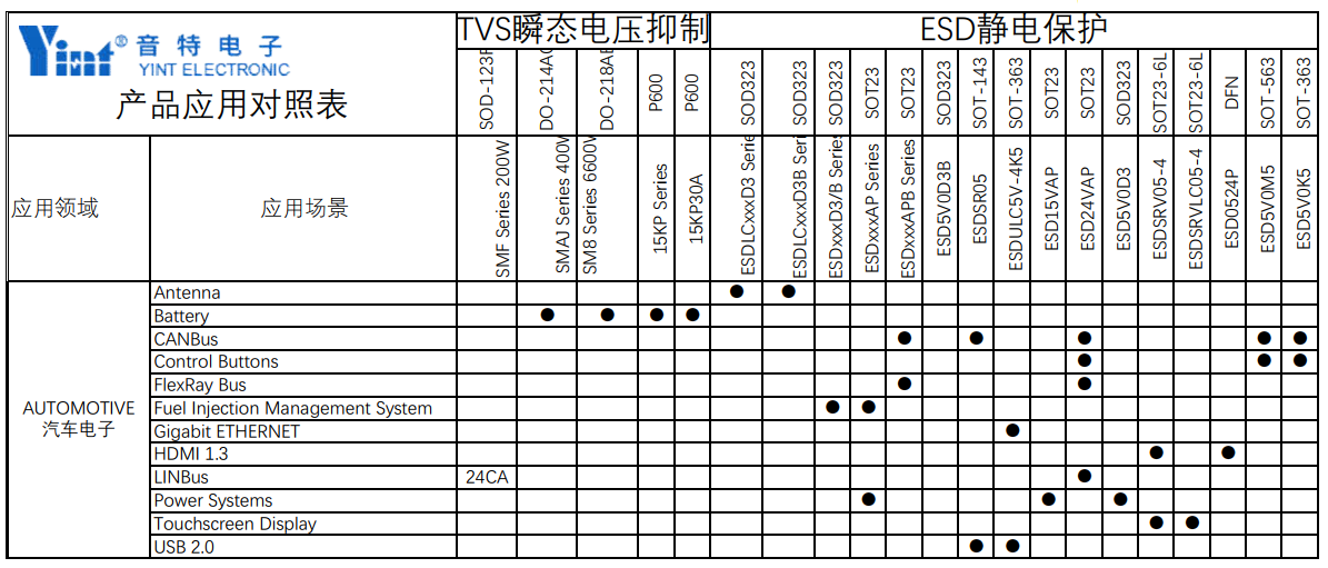 下面列表(biao)為音(yin)特電子(YINT)應用于汽(qi)車電子的部分產品。