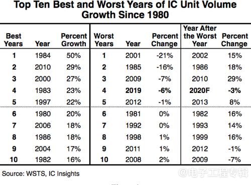 圖4:自1980年以來IC增長最好和最差的十年,來源WSTS、IC Insights