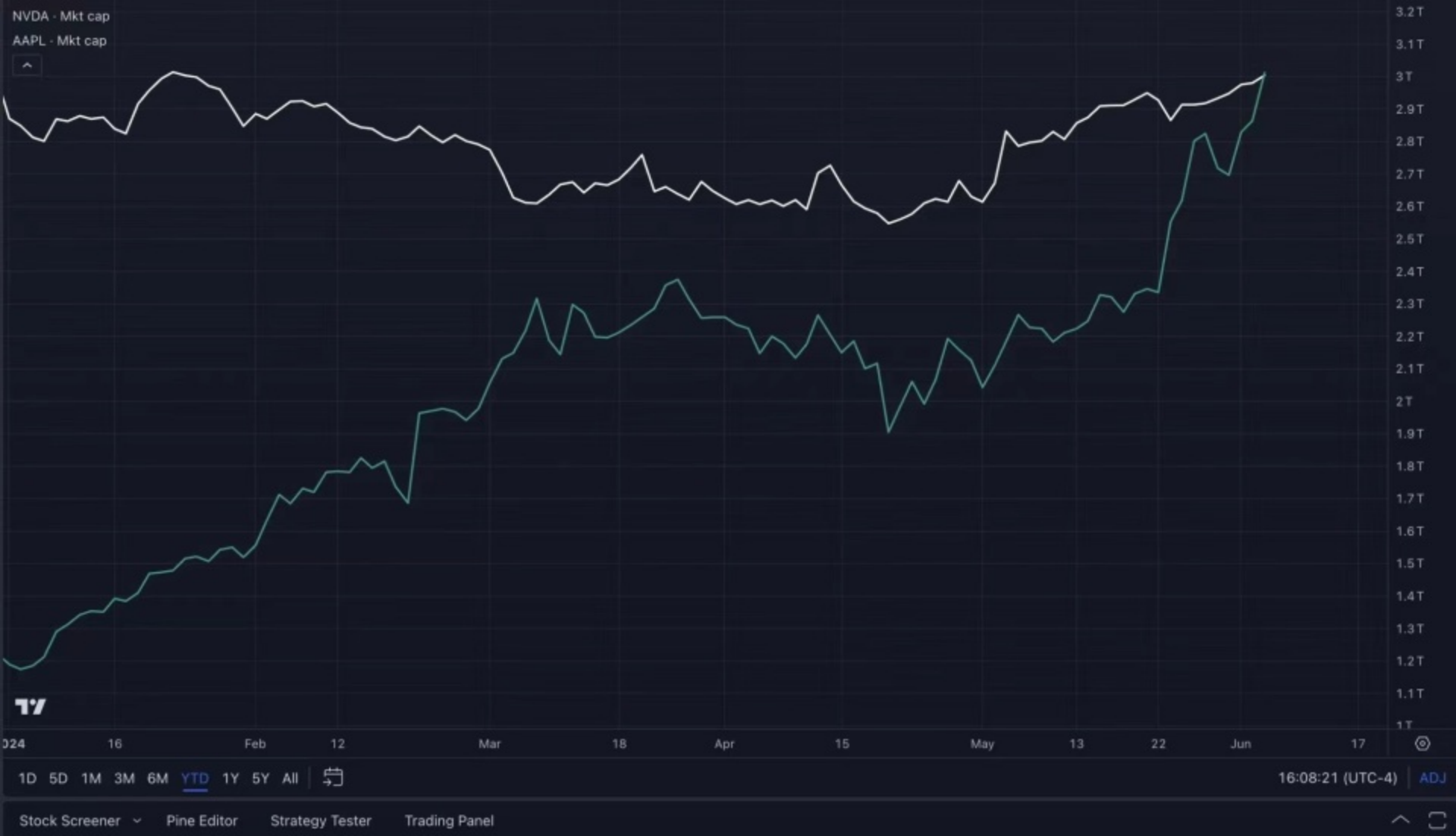 2024年蘋果和英偉達兩家公司市值走勢情況