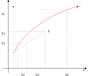 已知點(X1,Y1)和點(X2,Y2)求(Xi,Yi)。 由兩點可以得到直線L 的方程