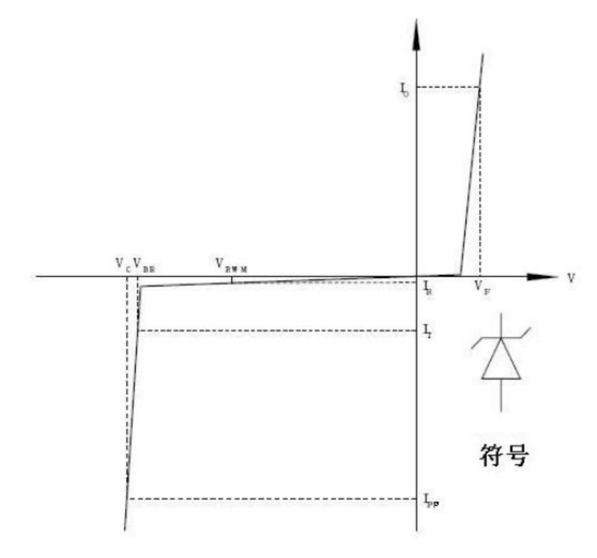 器件在發生擊穿的區域內,在規定的試驗電流I(BR)下,測得器件兩端的電壓稱為擊穿電壓,在此區域內,二極管成為低阻抗的通路。
