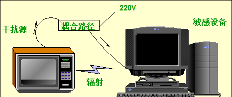 電磁干擾的產生原因:電壓/電流的變化中不必要的部分。電磁干擾的耦合途徑有兩種:導線傳導和空間輻射。