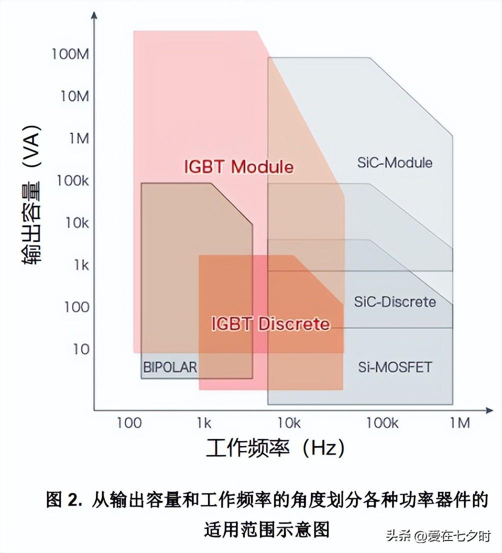 從 IGBT 和其他功率器件的輸出容量和工作頻率的角度介紹了它們各自的適用范圍。本章將介紹 IGBT的適用范圍和應用產品之間的關系。