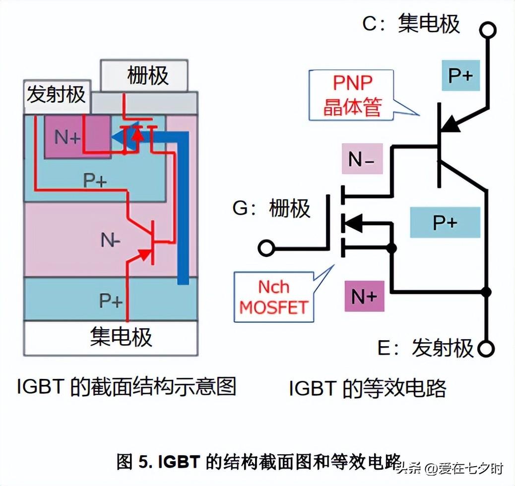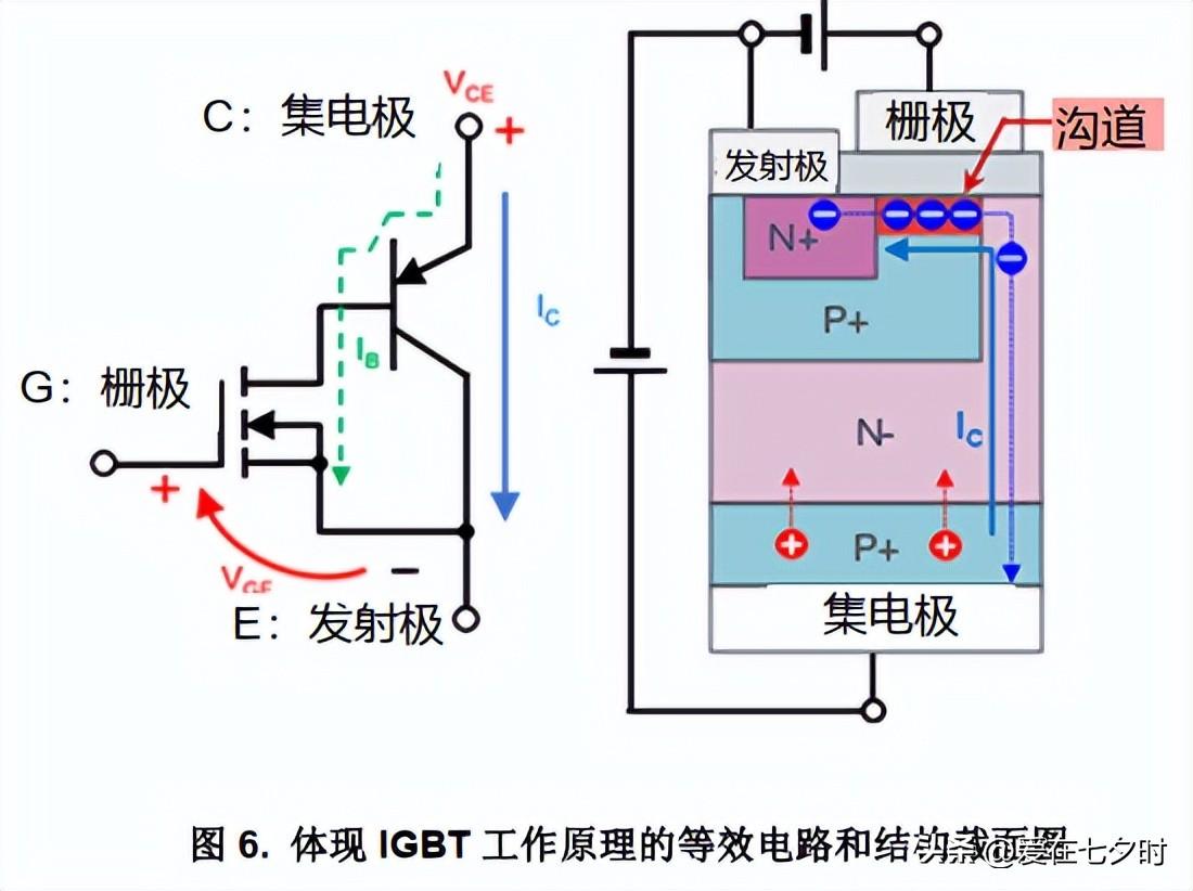 下圖 6 中的等效電路和結構截面圖就是說明 IGBT的工作原理。
